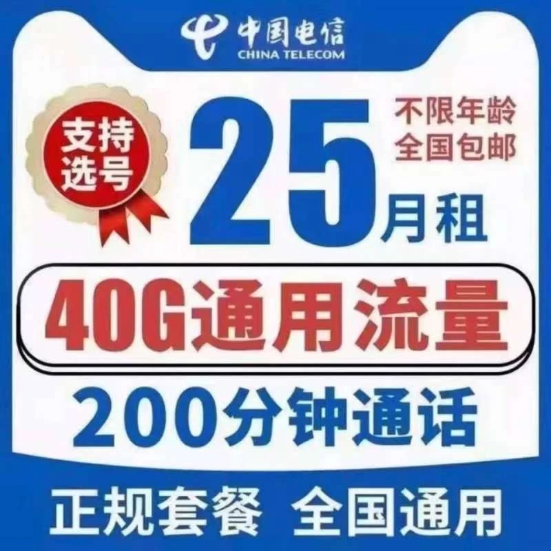 电信卡40g通用流量+200分钟通话一个月25