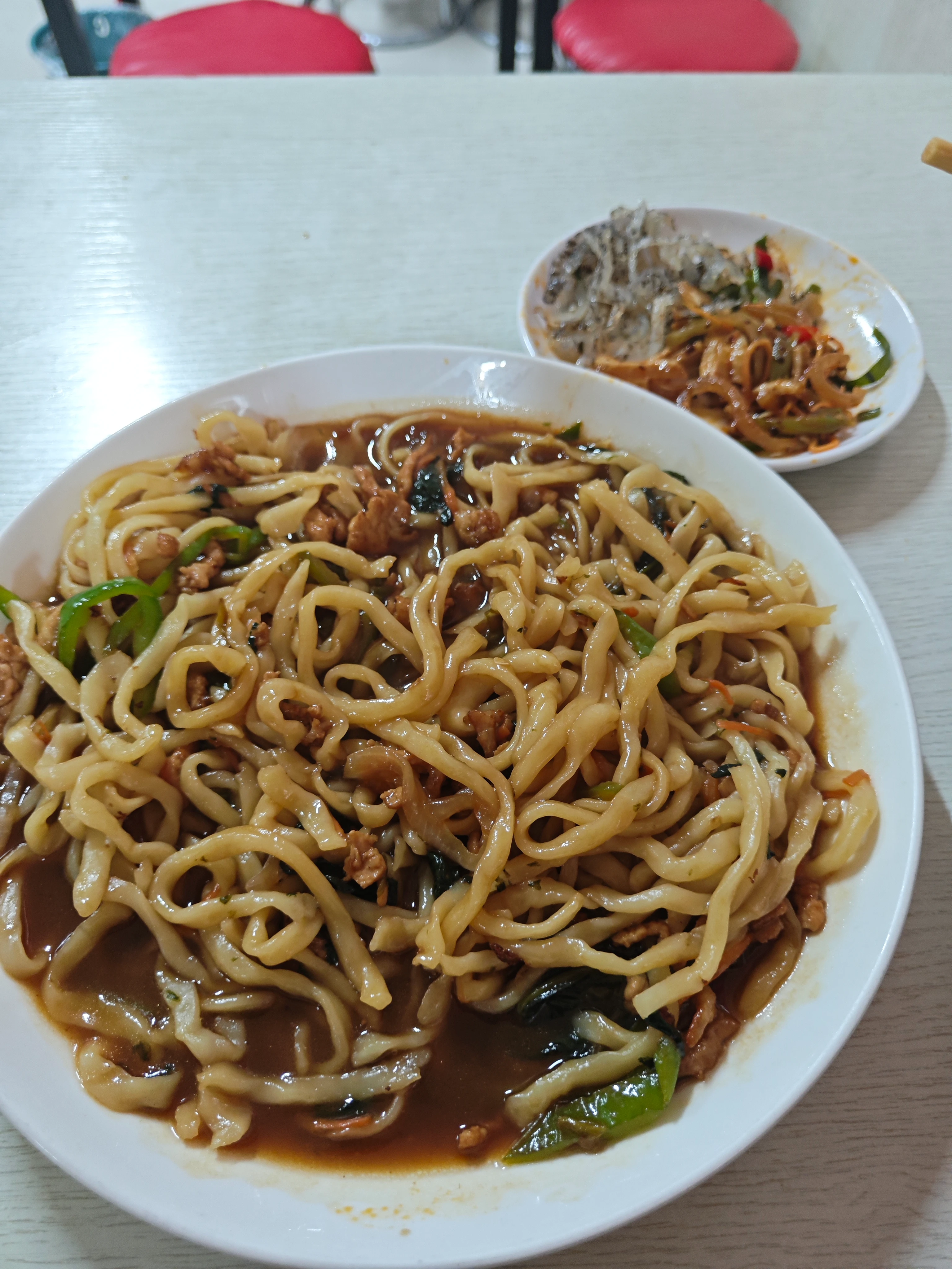 昨日全镇故障停电,网站自然也无法打开了,家里也无法做饭,去了板面吃一口,买了大碗鱼香肉丝炒面。 这是13元的量,大概30厘米的盘子,已经吃了一半了才拍照。最终还是剩了,以后坚决不要大碗。