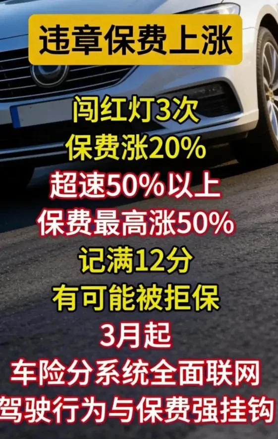 关于这一说法在短视频中已经传的沸沸汤汤了。这也成了主播的引流话题。引流真是无底线,不管真伪先散播。 实际找了一下相关信息,并没有相关文件,明确这样实施。 都是出事后,增加保费,违规只是涨幅因素其中之一。所以就不要焦虑了。 真有一天这样实施了,如果道路环境不规范,开车就有风险,道路实现违章套